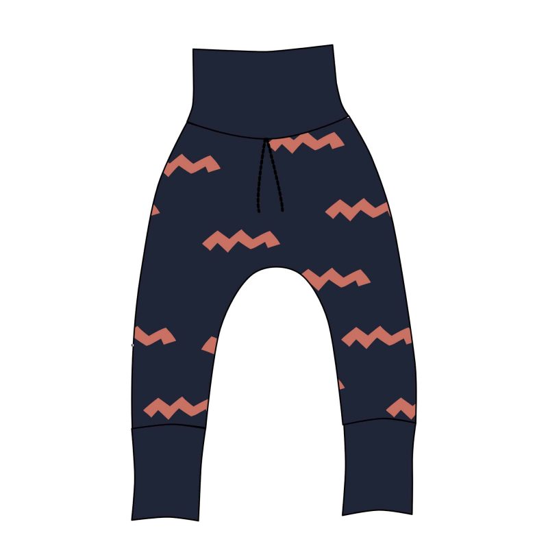Sarouel évolutif en sweat bouclette certifié OekoTex100, Motif Zigzag.